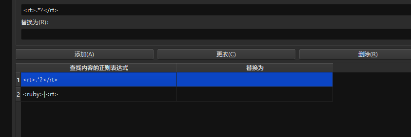 In most cases, using the regular expression <rt>.*?</rt> to remove the furigana itself is the most efficient and reliable method. The logic of this regex is to directly locate and remove the <rt> tag and its content, regardless of the surrounding <ruby> tag structure.