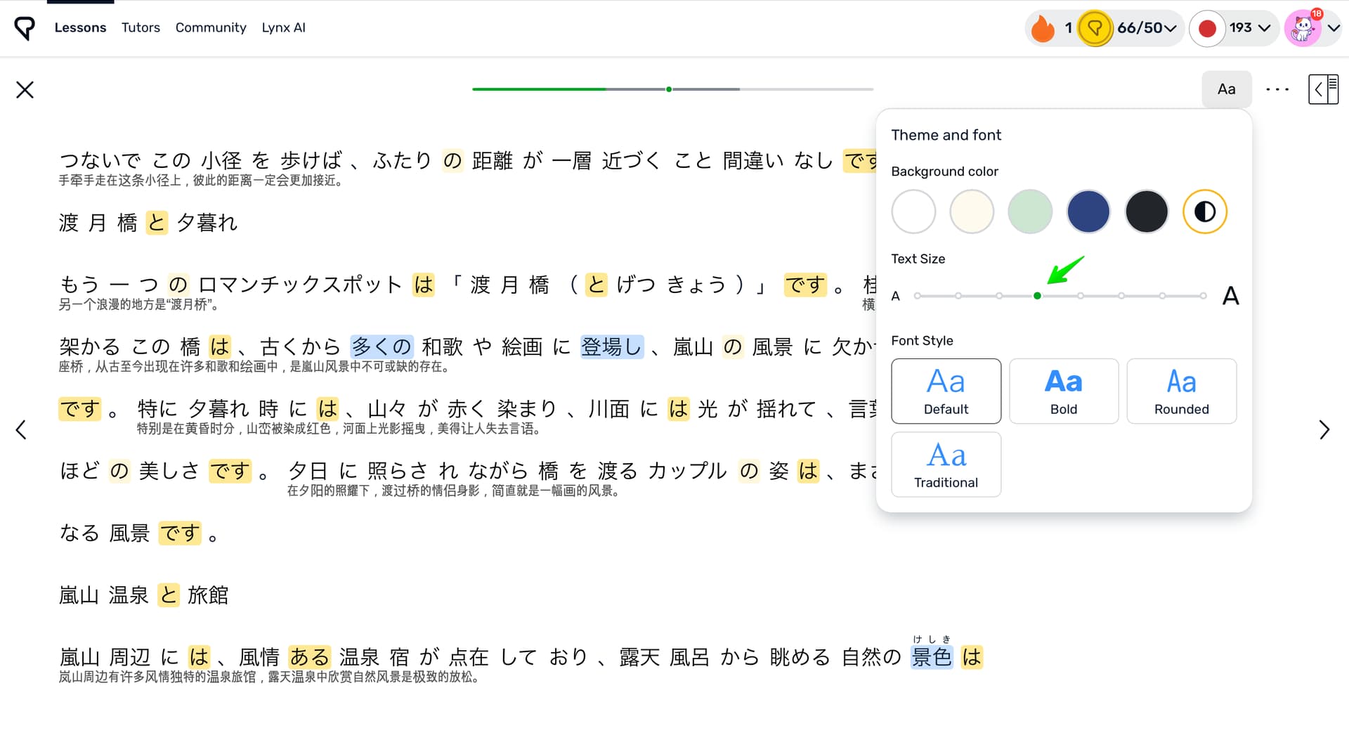 @lisanbao40 this is the standard font for translations. The translations font increases together with the font of the learning language.