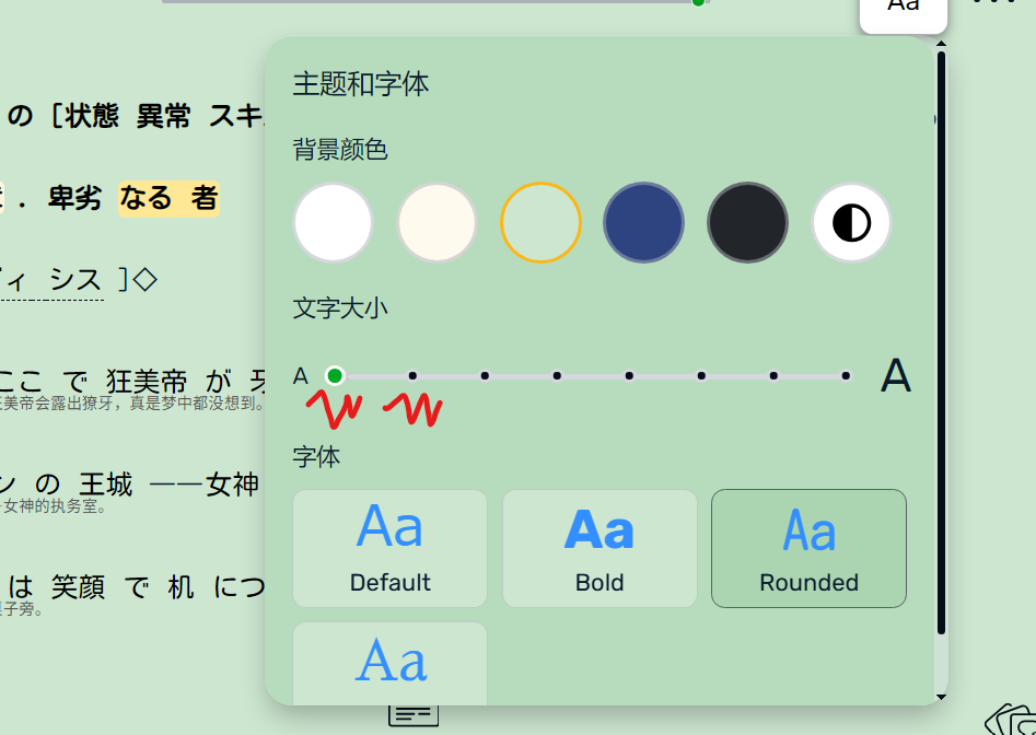 日语的翻译,字体太小了,也无法放大,能不能再设置选项建立一个开关,可以手动调节字体大小