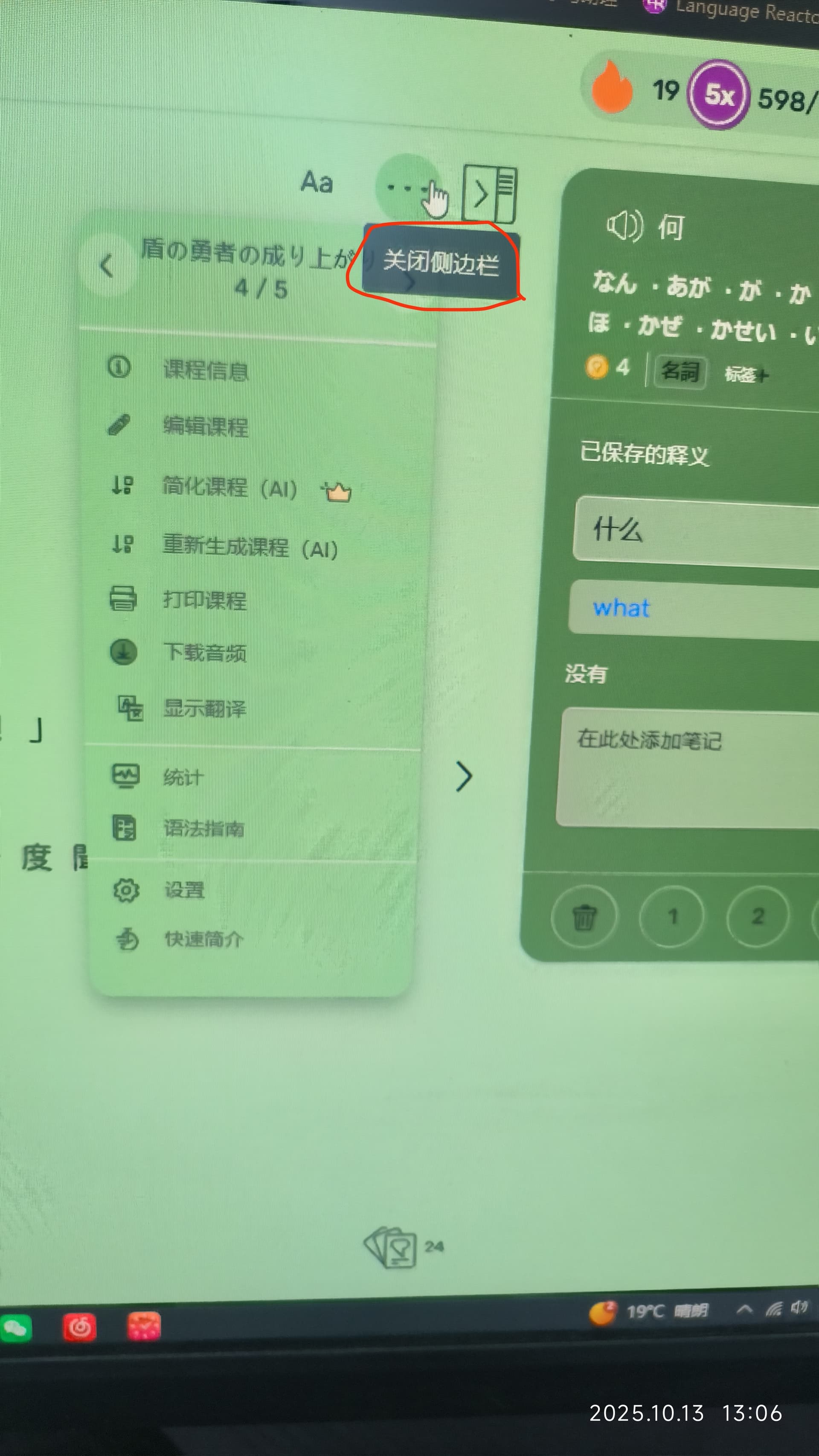 我没有特别注意,应该是在我进行为课程生成语音,还有就是在编辑课程界面,使用ai分割词汇功能之后,返回到页面以后出现的,我的印象大多是编辑课程的页面的一系列操作以后,返回以后就出现了这样的情况,遇到的这个问题的频率大概是一天两次。如果我再次发现它,并察觉到了规律我再反馈这个错误。