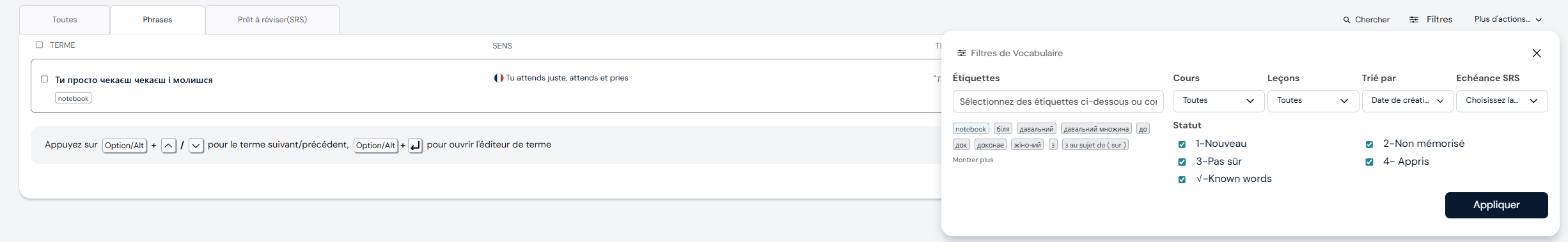 A better way to manage notes in the vocabulary and search information inside it.