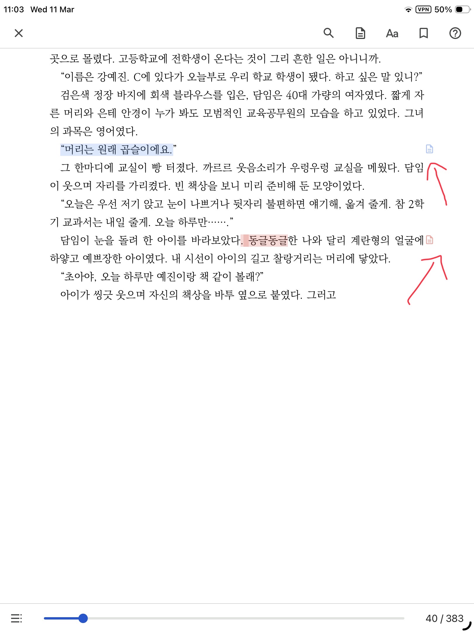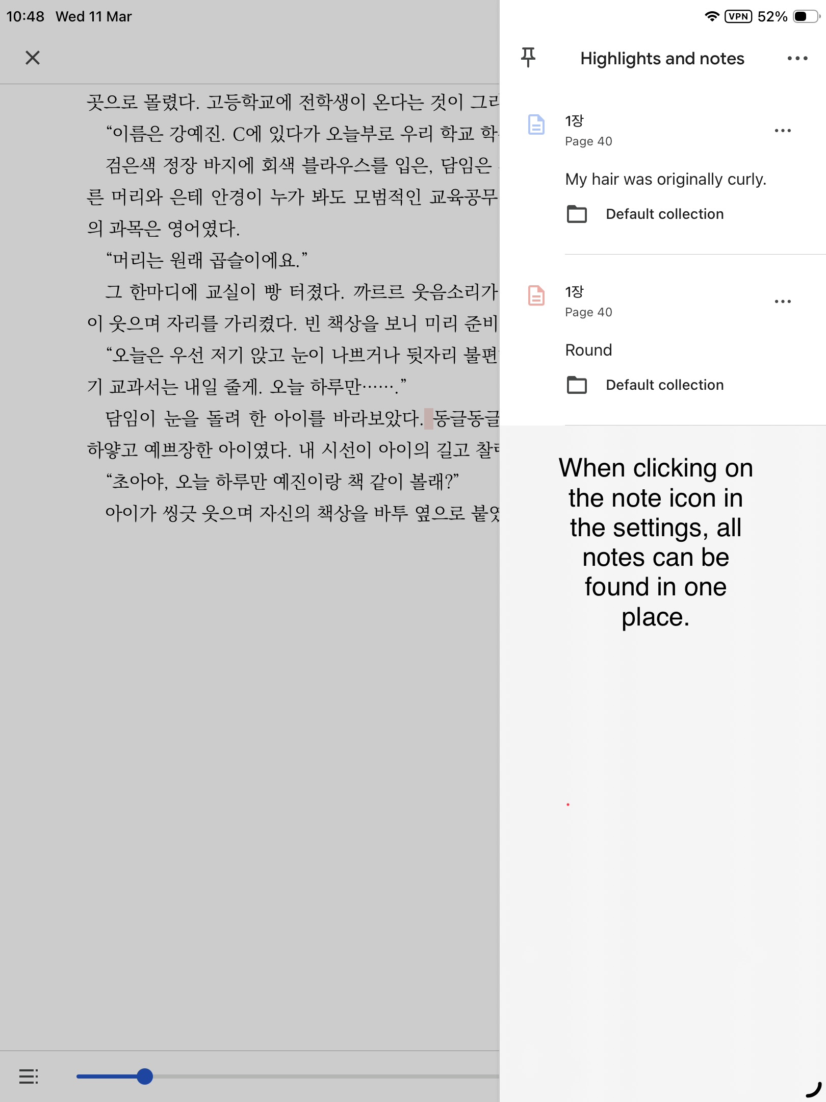 What I am asking for is a way to know which words have notes attached to them when going through a text and to have a way of being able to retrieve these notes easily in the form of a list or something. I am attaching screenshots of how it’s done in Google Play Books to give you an idea.