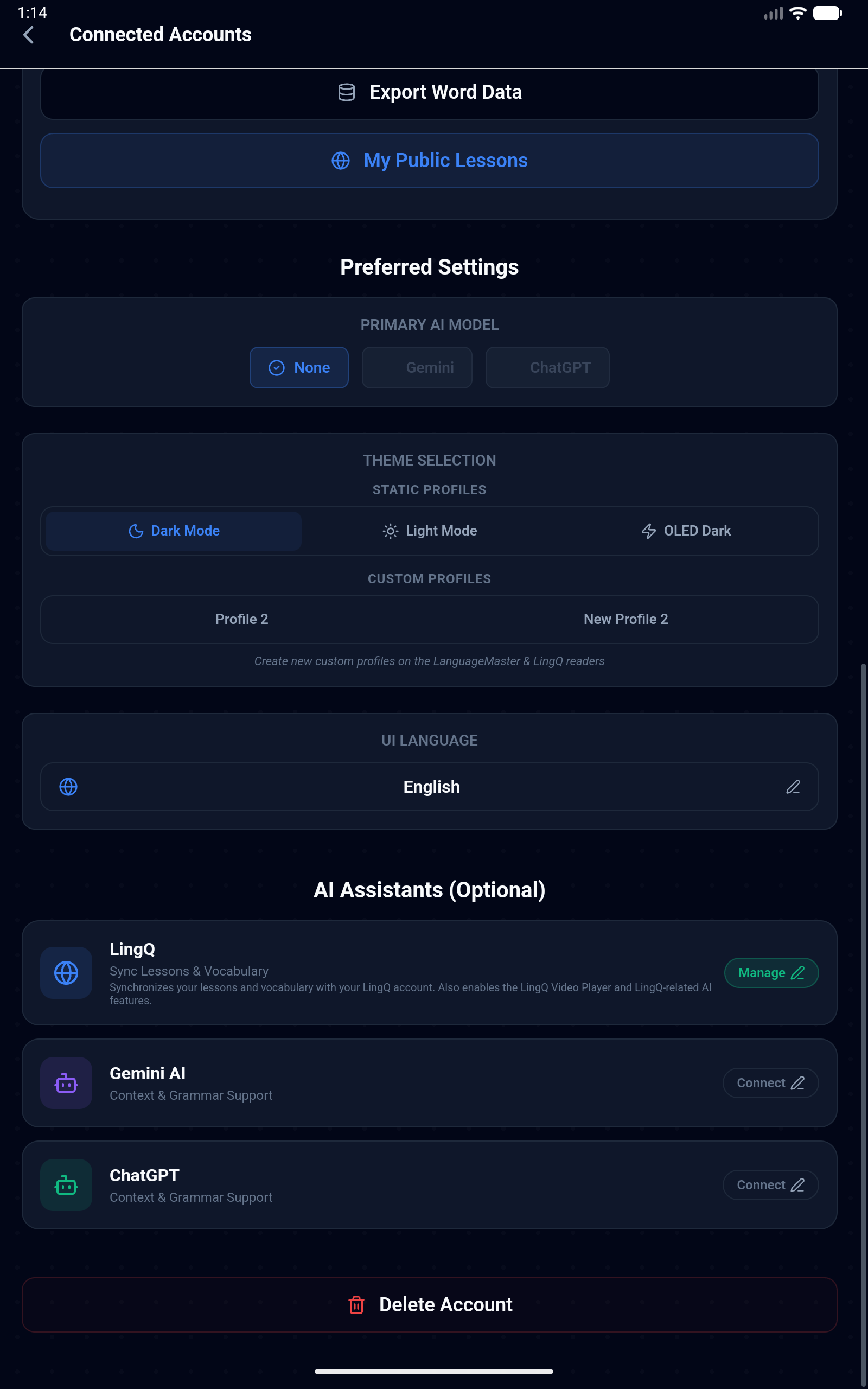 - LanguageMaster Sync: Users can also sync their LingQ vocabulary to LanguageMaster to maintain their progression when using LanguageMaster distinct features.