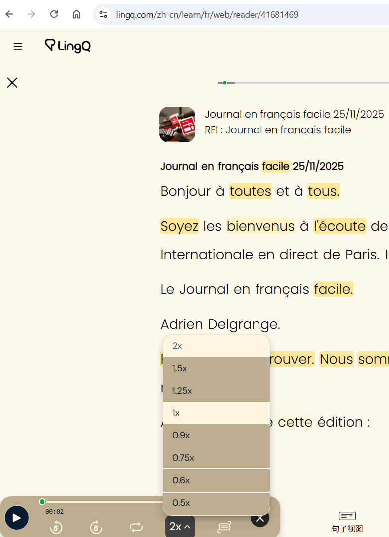 It would be great if the speed of the audio in sentence mode could be globally changed, so it would work with web shortcuts.