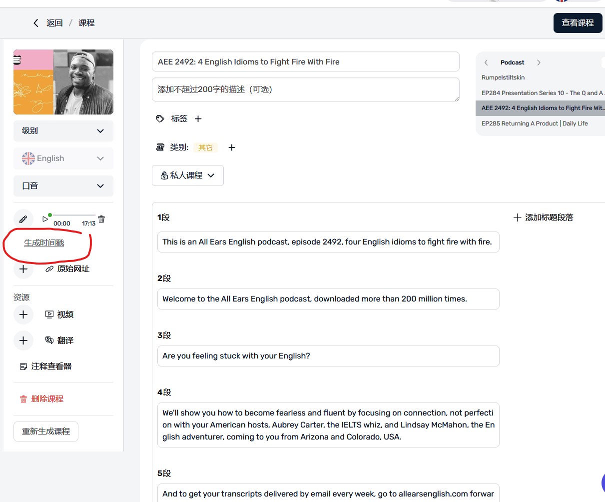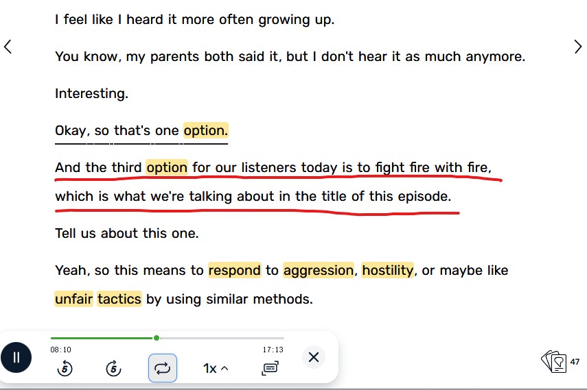 The audio has finished playing the content under the red line, but the underline is still on the previous sentence. The text is a transcription of the sound and is out of sync. I then regenerated the timeline and it was still out of sync.