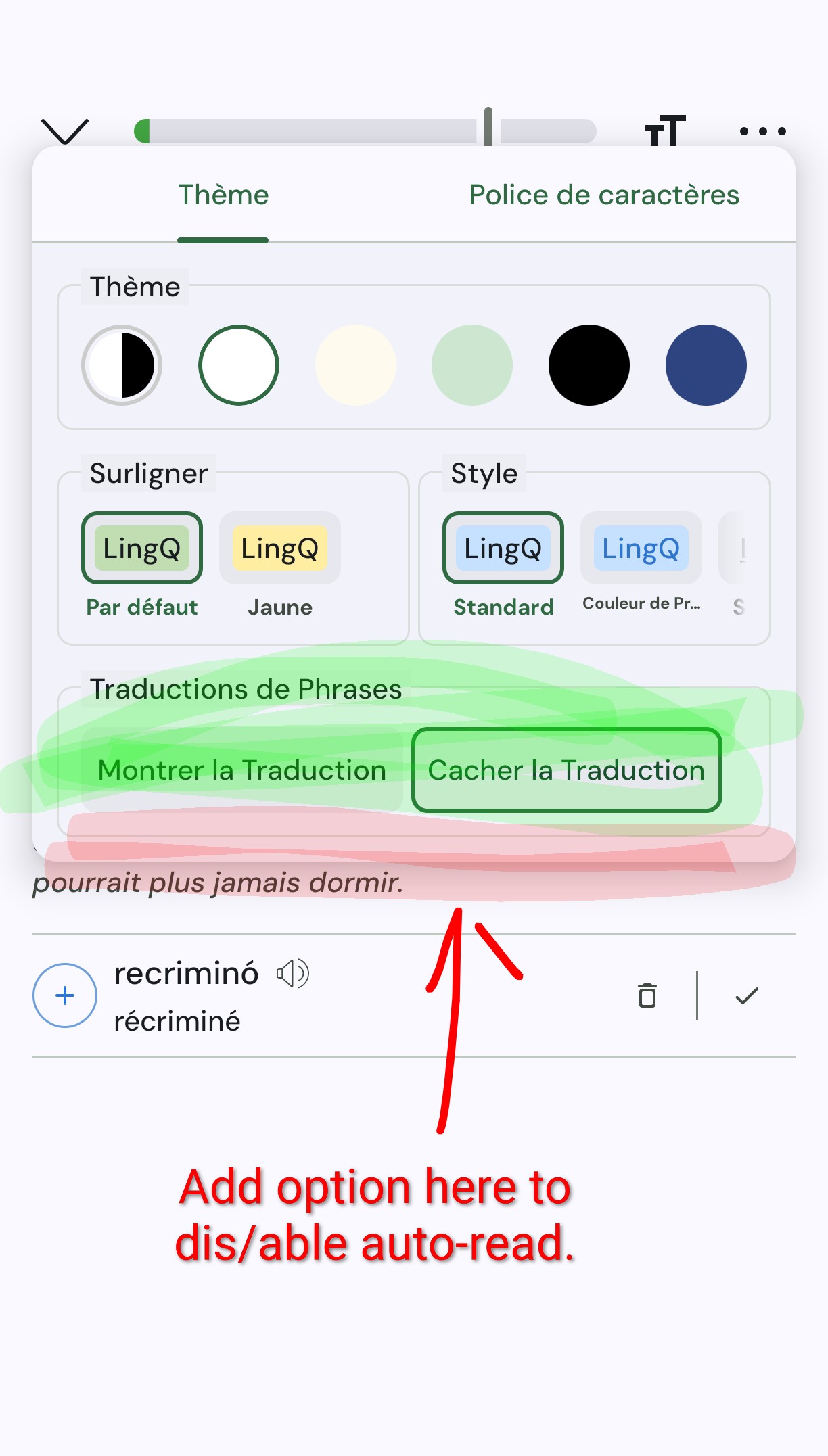 2 options have an effect in the sentence view - auto-translating & auto-reading- but only 1 got a shortcut in the Tt dialog: auto-translate, making the other one much less discoverable, hence my initial problem/report. Both “siblings” deserve a seat at the same table, in the Tt dialog (see image below).