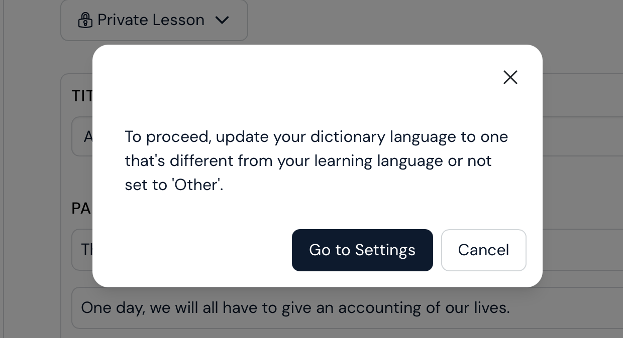 As for the second point, this is expected behavior. Regeneration of lesson process includes generation of lesson translation. If you import a lesson in English and also set the dictionary language to English, you will be prompted to change the dictionary language before proceeding. Same happens, if your dictionary language is set to “Other”.