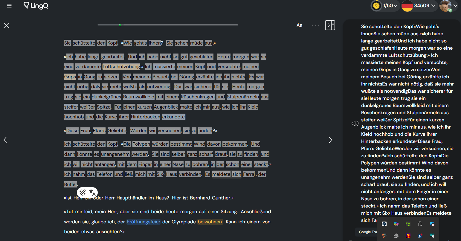 In any case, this is a multi-step process. I cannot use LingQs for this purpose, because sometimes sentances have more than 9 words.