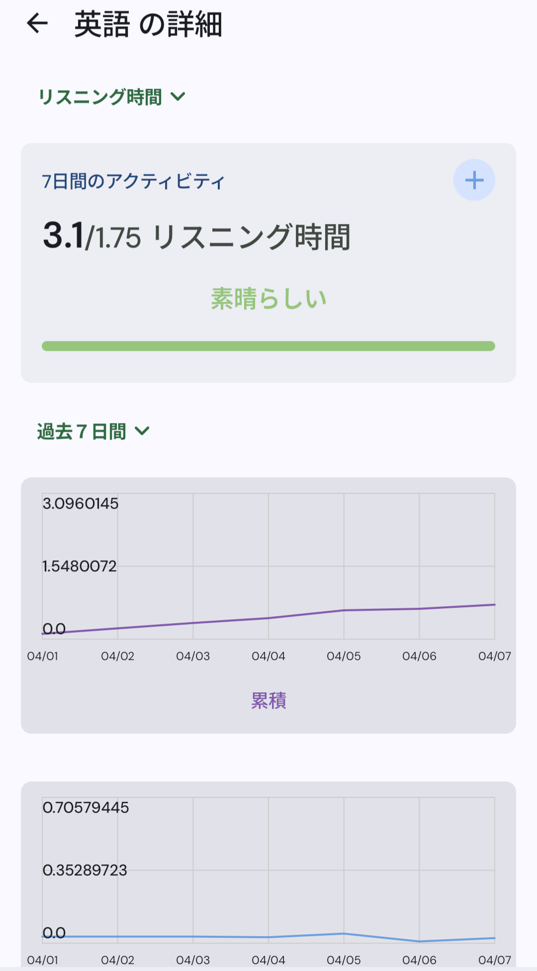 The listening time record appears to be incorrect. Recently, the recorded listening time has been extremely short. Even on days when I listened for at least 30 minutes, it shows a value much smaller than 0.5.