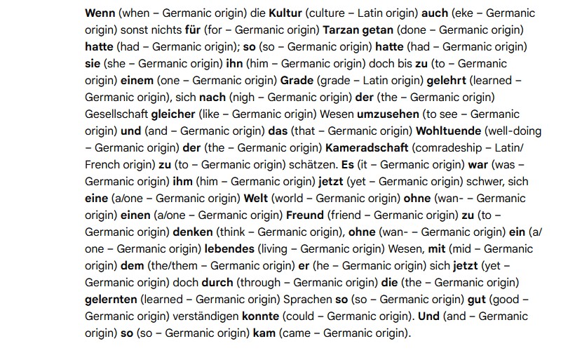There is just one little random part of Tarzan book that I’m reading analyzed by AI. Only small part of the shared words are unhelpful. Same is also true between english and french; not all cognates are helpful.