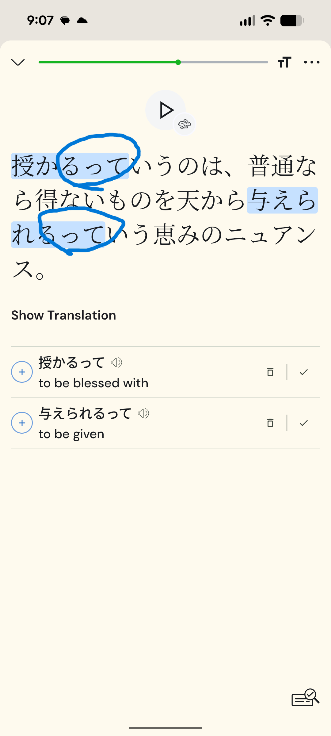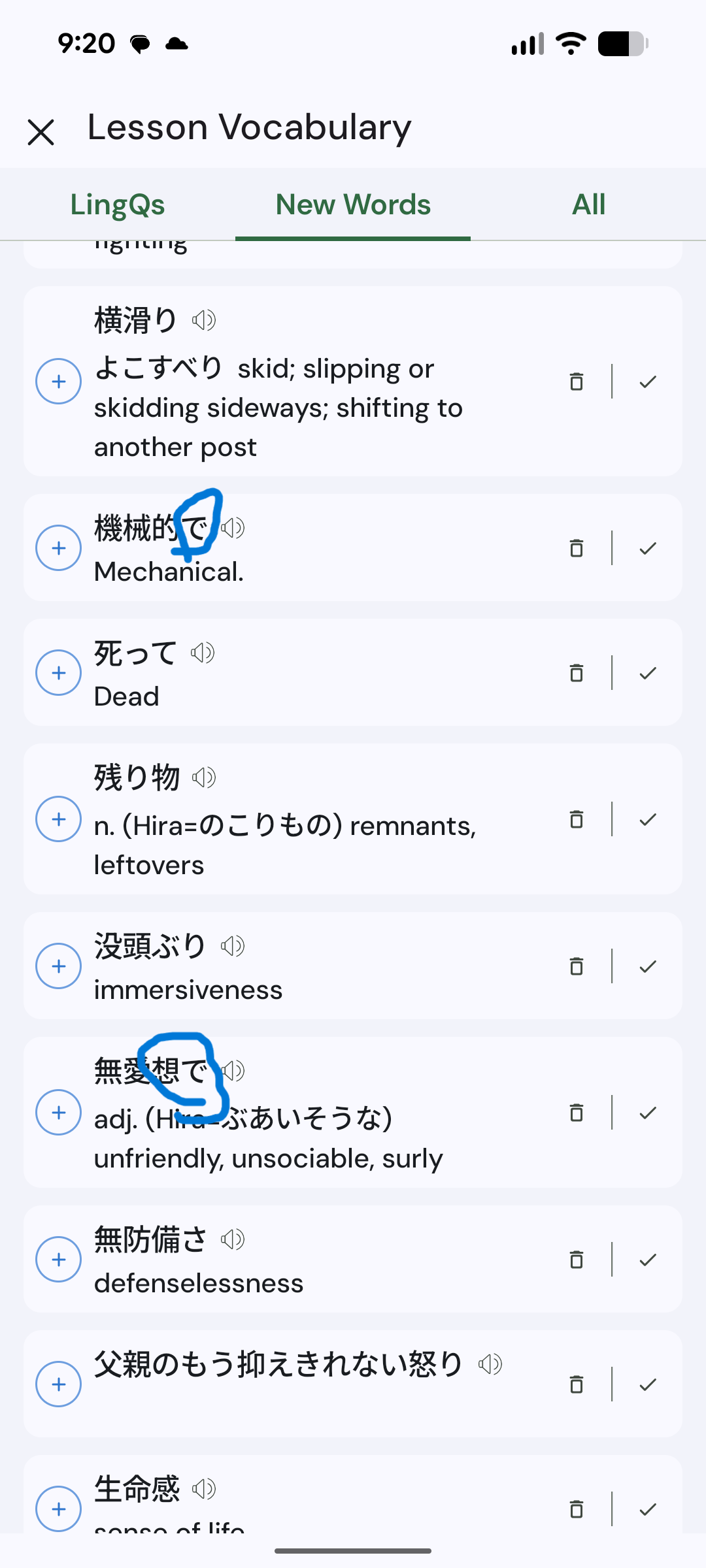 I ‘know’ about 53,000 words in Japanese according to my LingQ stats, so I really shouldn’t be coming across many new words. Yet I often have dozens of new words in a lesson, and at least half of them are not words at all, just nonsensical combinations of two or more words (including particles).
