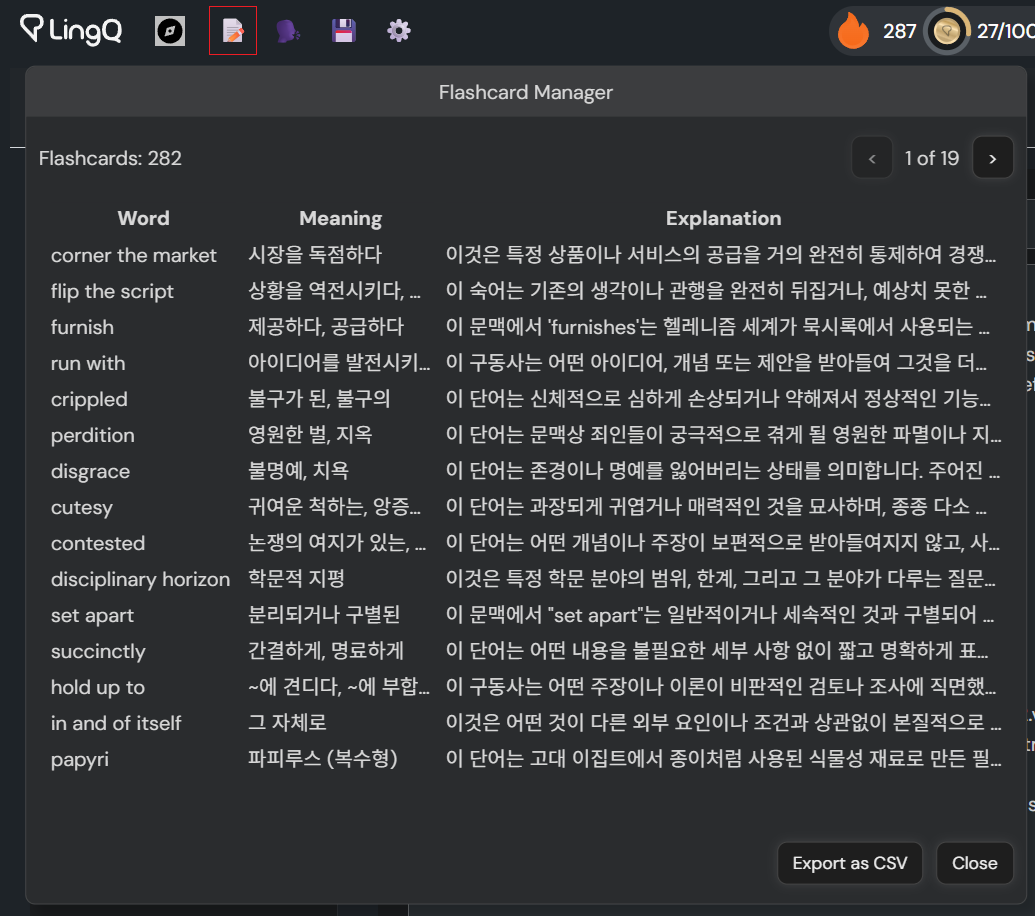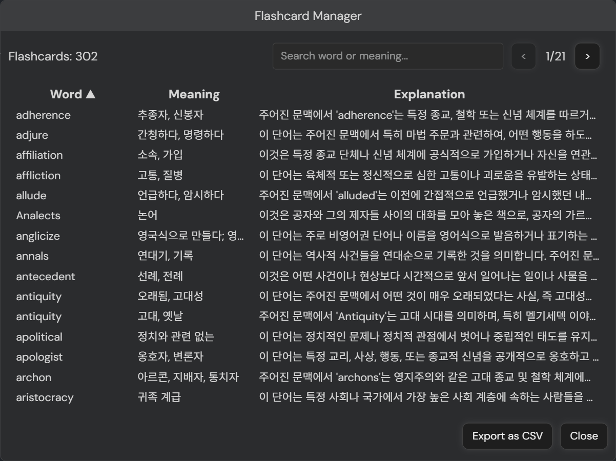 v9.3: Implement flashcard manager and CSV export