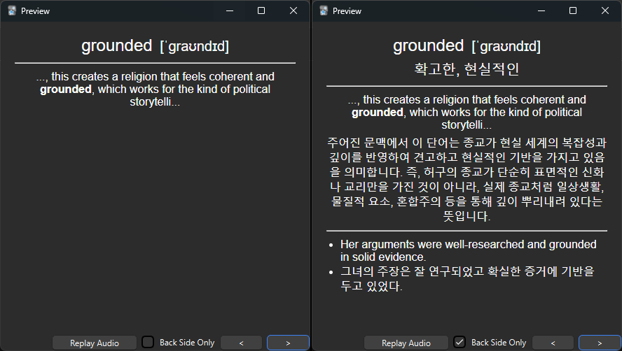 v9.5: You can import the flashcard CSV into Anki using a matching card template.