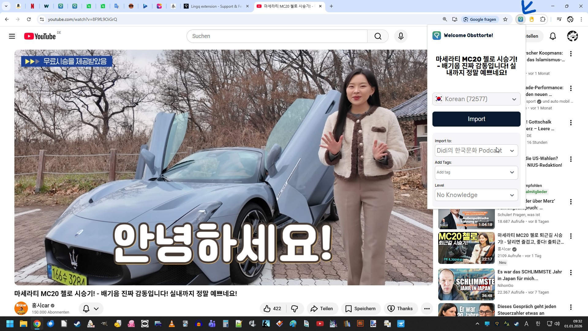 I want to add a video to my library. However, I installed the Lingq download extension. Hower Lingq keeps asking me to download the extension
