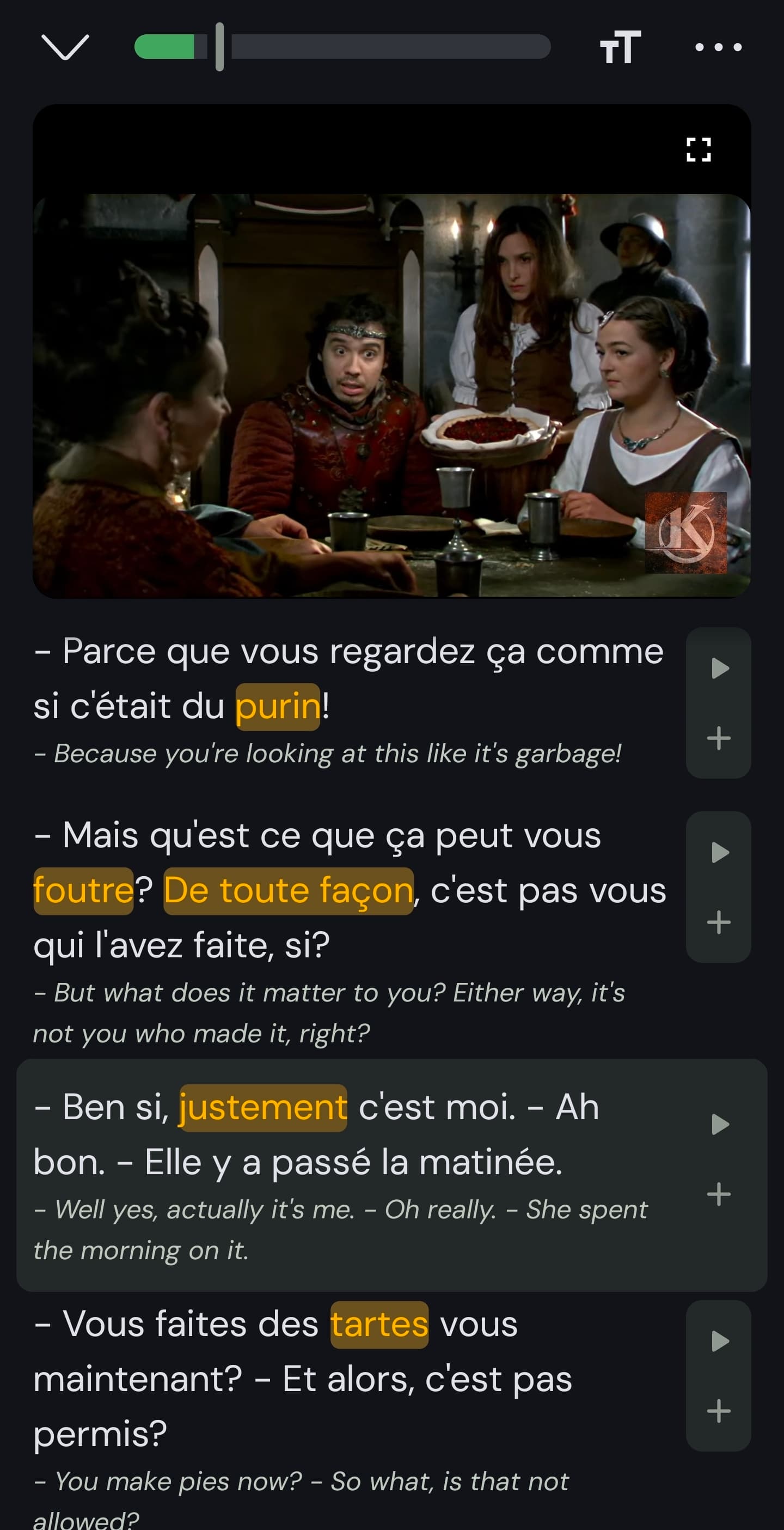 One way to improve this a bit—this is for people who use “paging marks as known” when reading. When a blue word shows up in a subtitle, I might know that word and not want to click on it, to keep the flow of the video going. Once the next subtitle comes up, I’d like that blue word in the previous subtitle to be automatically marked as known.