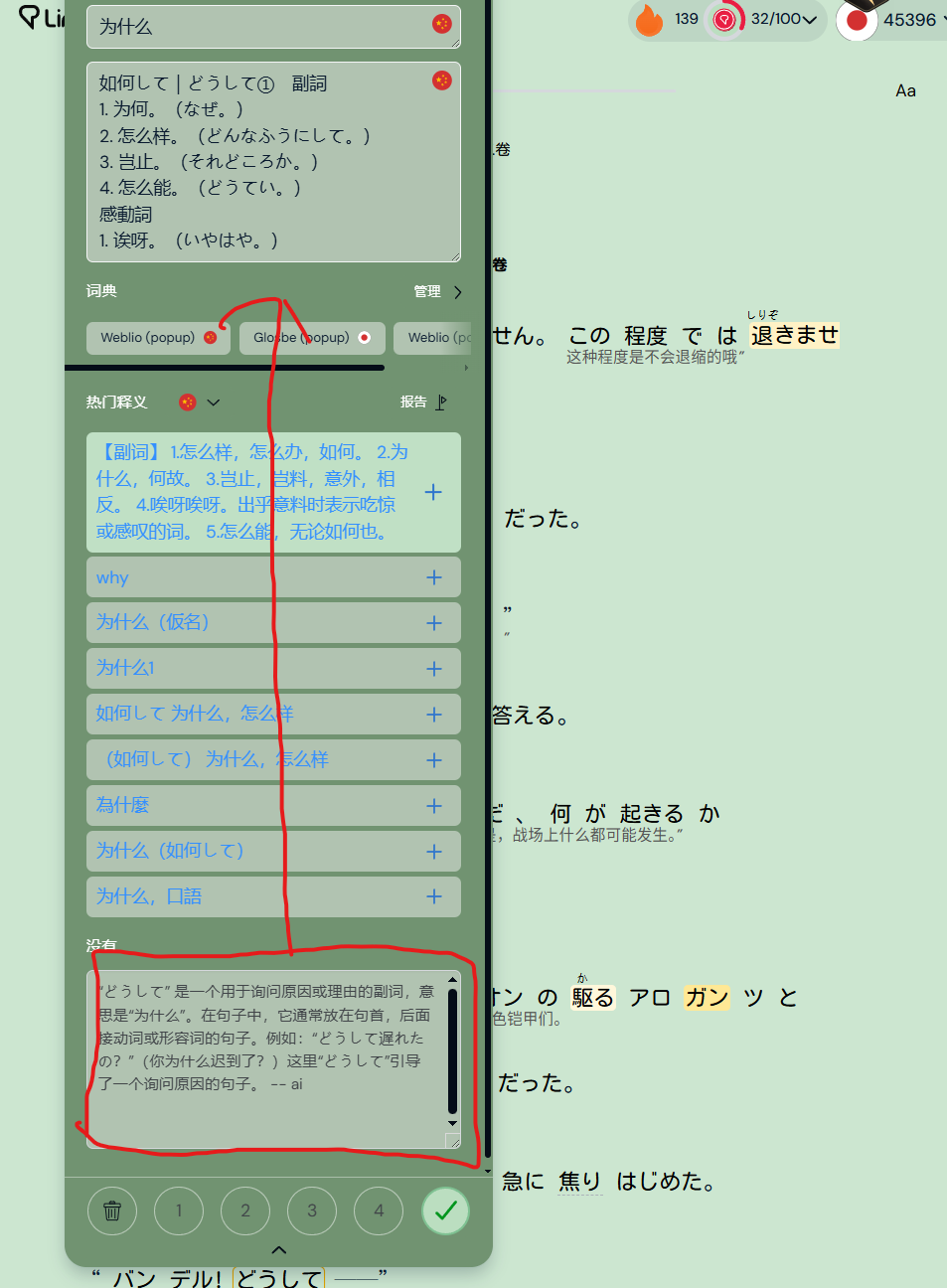 This approach also has the added benefit of encouraging users to add sentences to the notes section. Previously, I was too lazy to use it, so I dumped everything into the vocabulary panel. If these two functions were placed closer together, the notes feature would likely see much more frequent use.