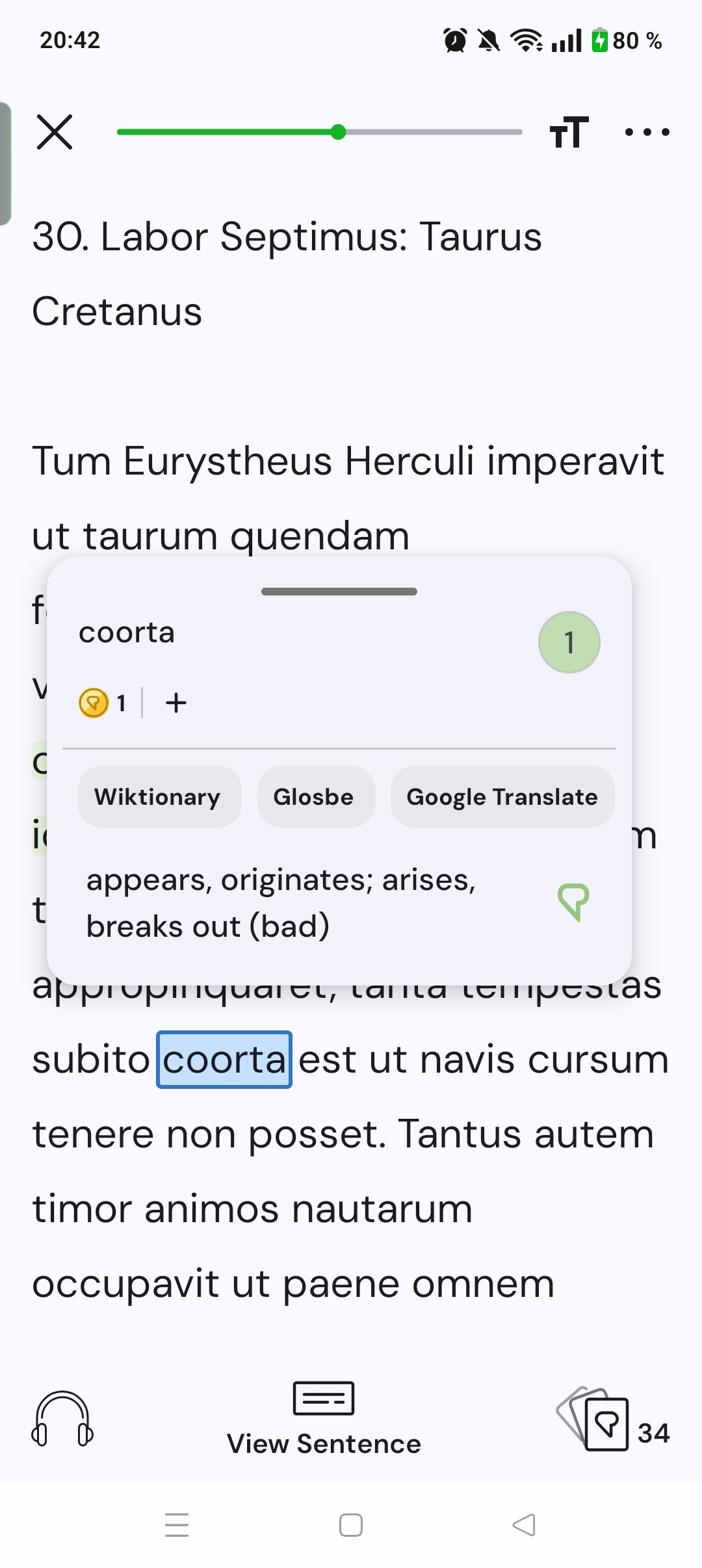 Now it happened. I can get you the id of the lesson tomorrow if you want it, but otherwise it’s called “Hercules IV: FF 27-31” in course “Hercules (Fabulae Faciles)”. Here are som screenshots of what it looks like: