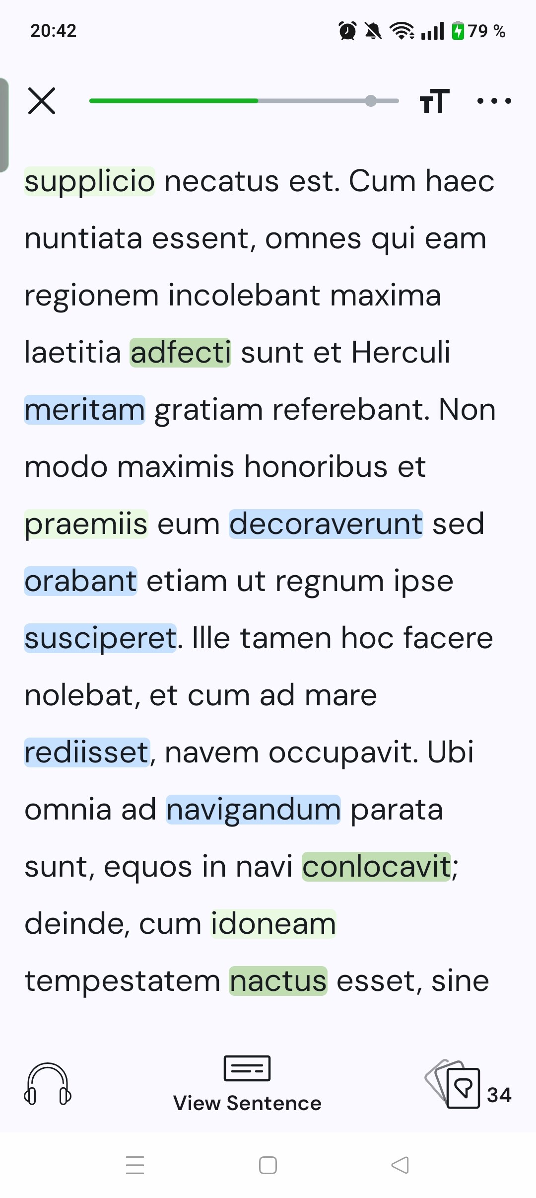 I noticed that meritam was blue but appeared as added when I clicked it. I’m here at the second to last page of the lesson. I then closed and opened the lesson and I’m transported to the middle of the lesson where I have blue words (coorta in this case) that are actually already added.