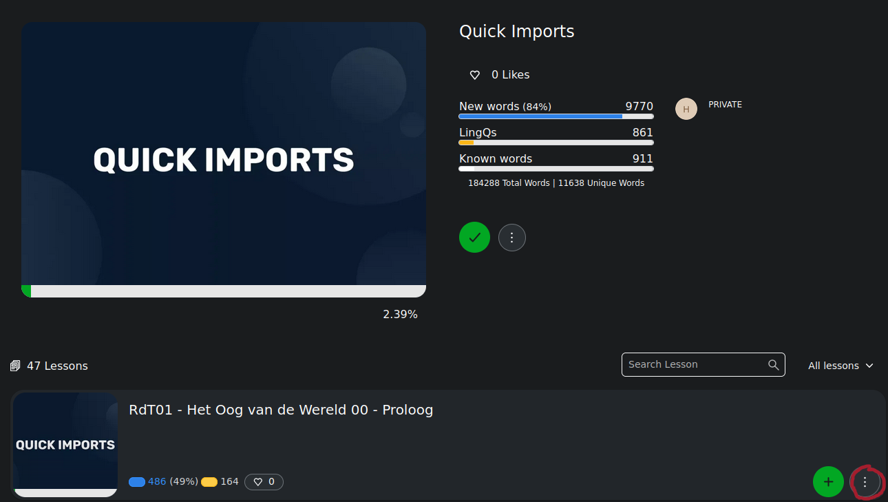 When I click on ‘Statistics’ from the reading page (image 1), I can edit the stats. When I click on ‘Lesson Stats’ from the library menu and course view page (images 2 + 3), I can’t edit the stats. Allowing editing there, would be a huge improvement to the UI. Maybe an Edit Stats button on the Lesson Stats page?