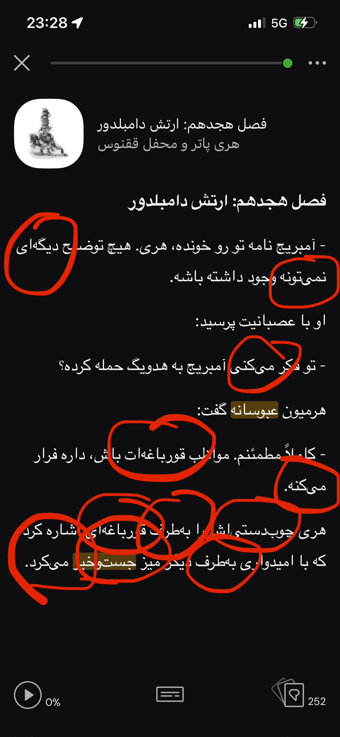 Here’s a lesson from a private course (Harry Potter), opened for the first time on iOS. I have circled instances of intact ZWNJs. This confirms that the iOS app does not delete ZWNJs upon opening.