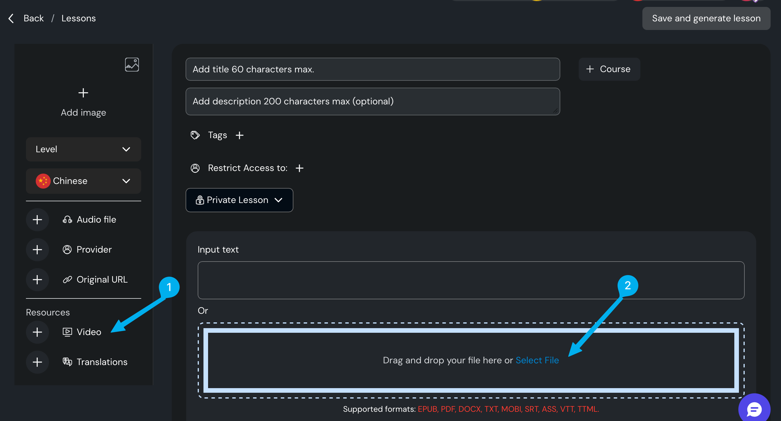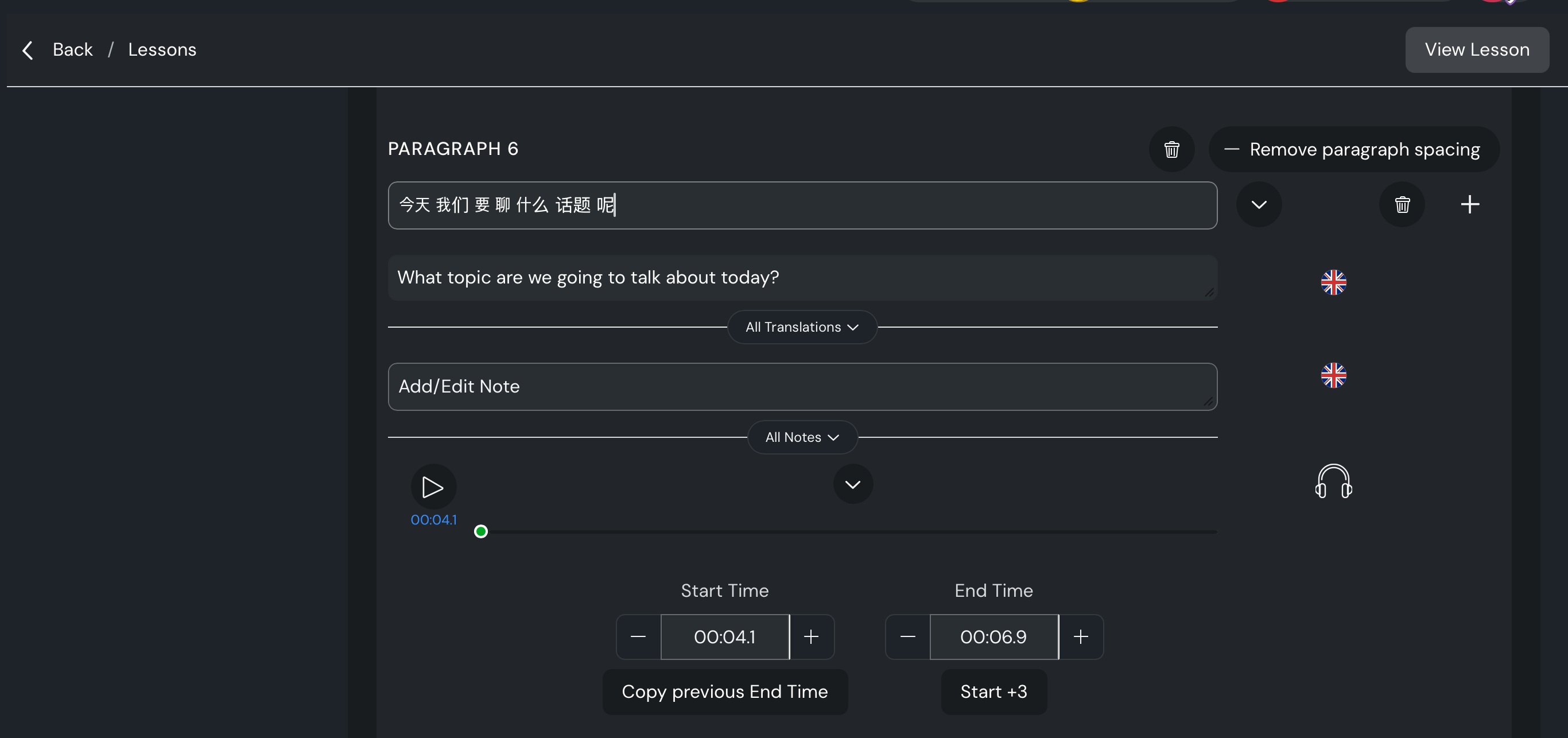 Thank you for the fast response. So as a quick solution, I see to create a new lesson, where specify the video URL and add SRT file that you want. Time-stamps will be generated automatically in this case too.