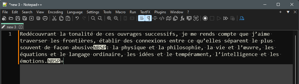 I did more research and copied a snippet of text with that weird space (that cause word to join up in lingQ) into Notepad++ and later click on Show all character under View → Show Symbol → Show all character.