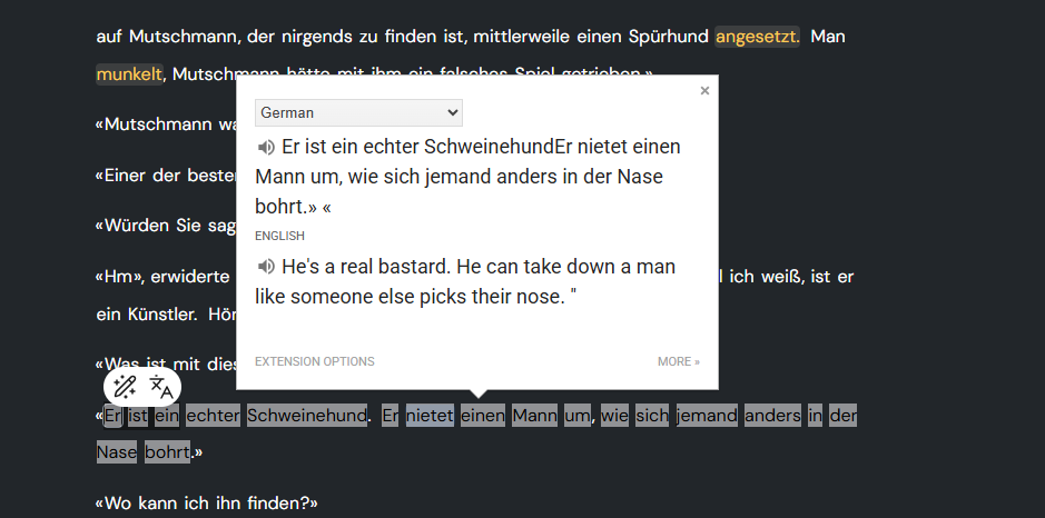 You can install something like google translate extension to your browser and have it set to autopopup. Then if you select the sentence it’ll pop up the meaning. (assuming you are doing this for a sentence longer than what Lingq’s highlighting does and hence the problem?