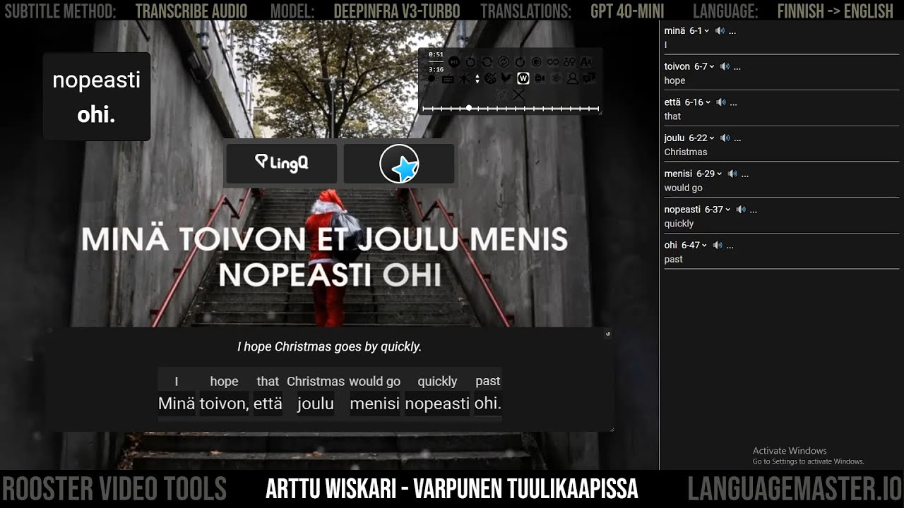 Create LingQ lessons and load Rooster Video Tools with enhanced YouTube subtitles. Used as an alternative to audio transcription and professional subtitles.