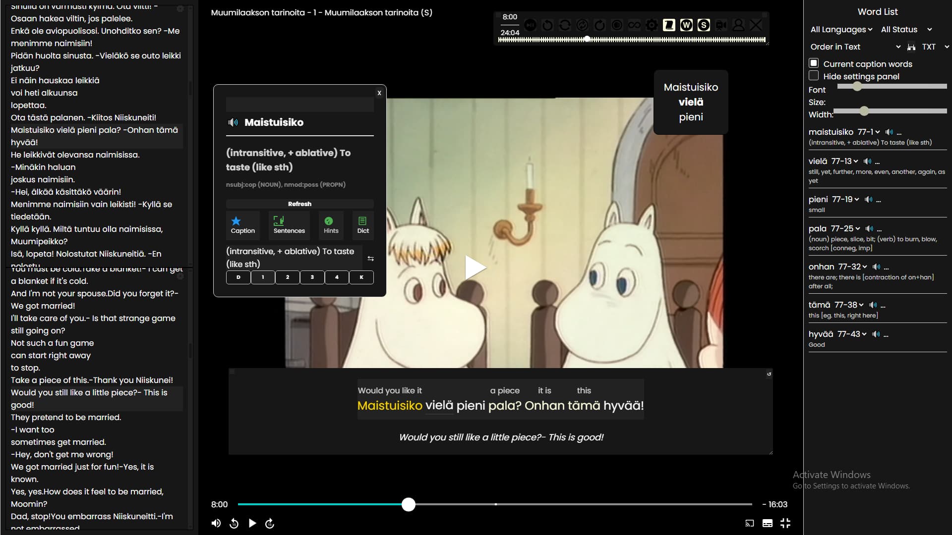 Note: Subtitles in Korean are limited and the audio is DRM. Korean subtitles for the overlay will need to be translated from a different language or sourced from elsewhere.