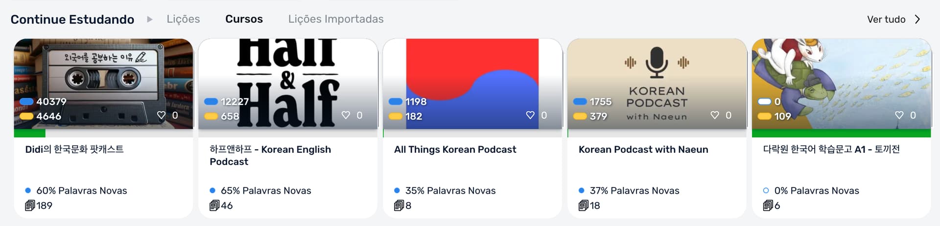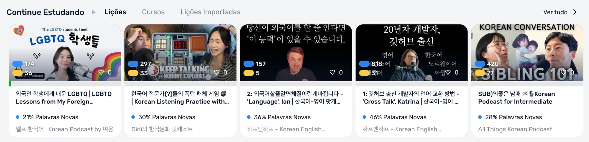 (As you can see in the screenshots, all courses from the respective lessons show up in Continue Studying EXCEPT the one from the first lesson, and I imported them all from YouTube).