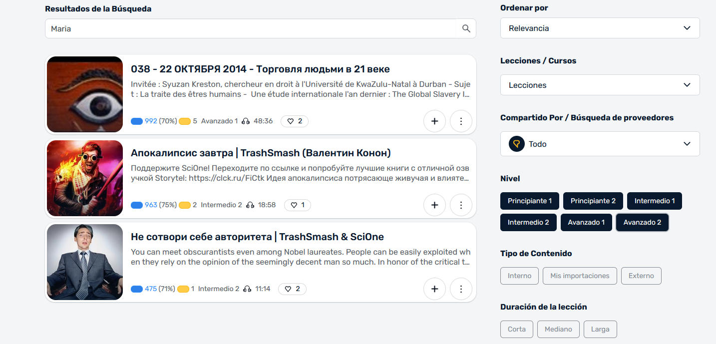 Also those results are shown because there is word ‘Maria’ in the description of the lesson. On this page only two rows of description is displayed, so it may be not visible here. And if you check ‘Lesson info’ - there will be ‘Maria’ somewhere.