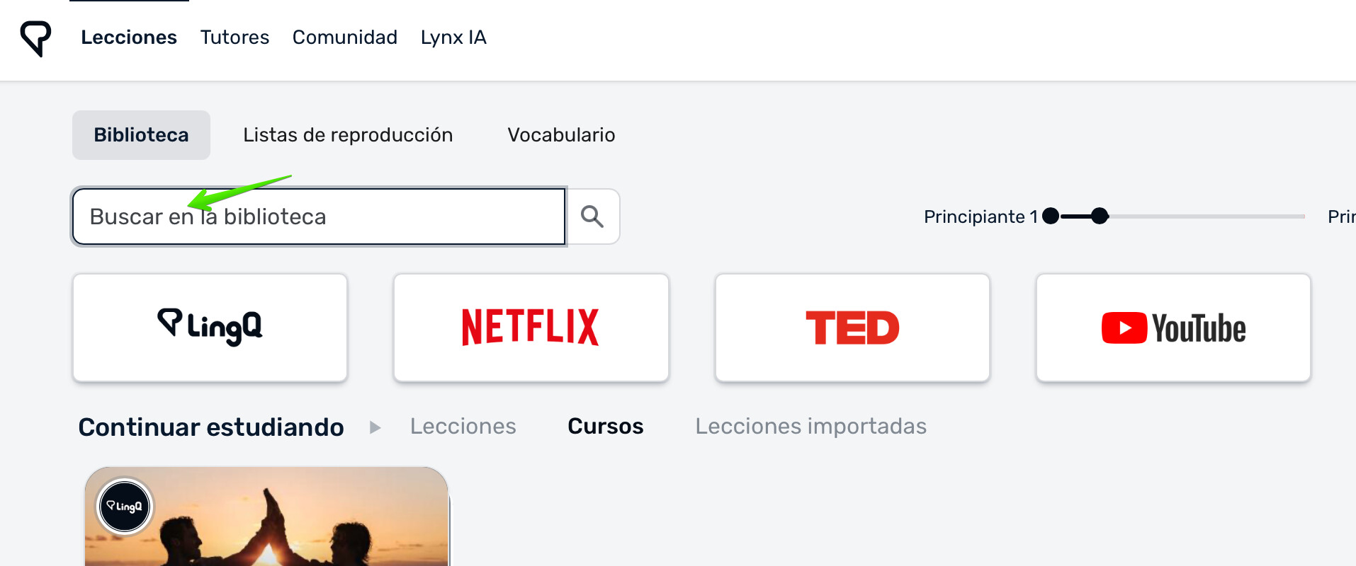 I tried just searching in that root box (“Buscar en la biblioteca”).