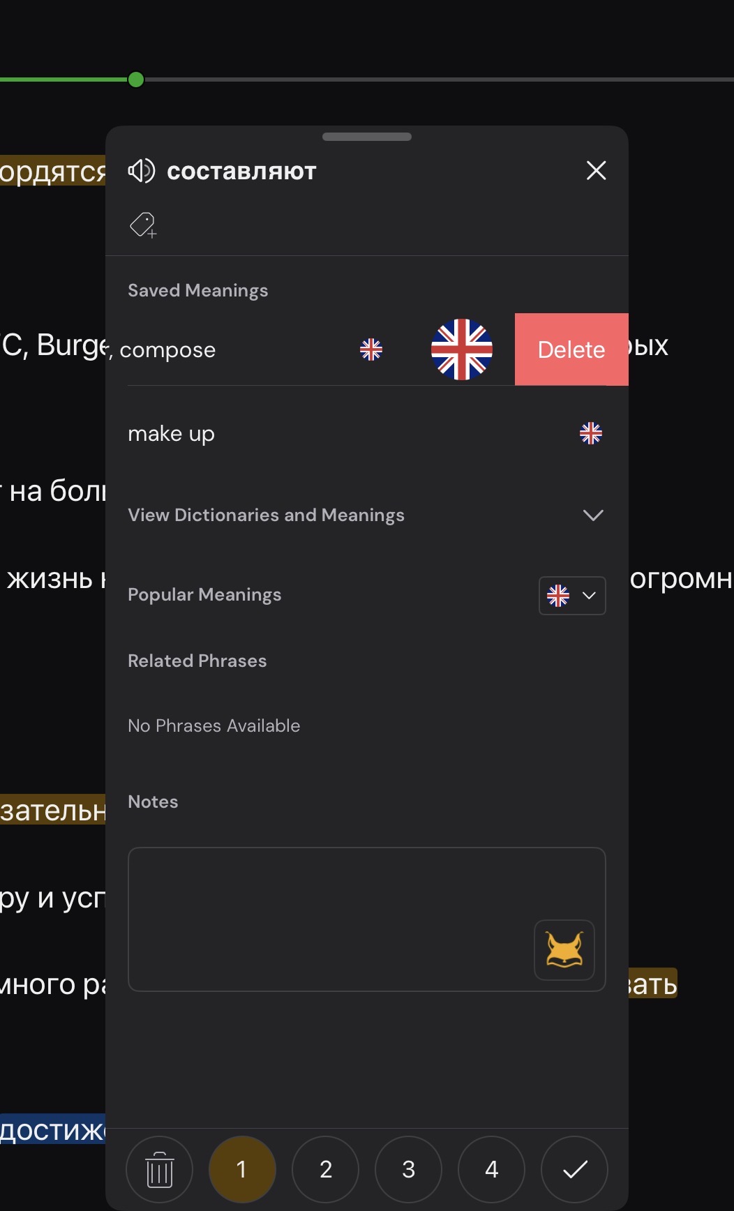 In the iOS app, I can delete a definition from the list of chosen definitions (shown below). This does not seem to be possible when in the web app in Safari on the iPad.