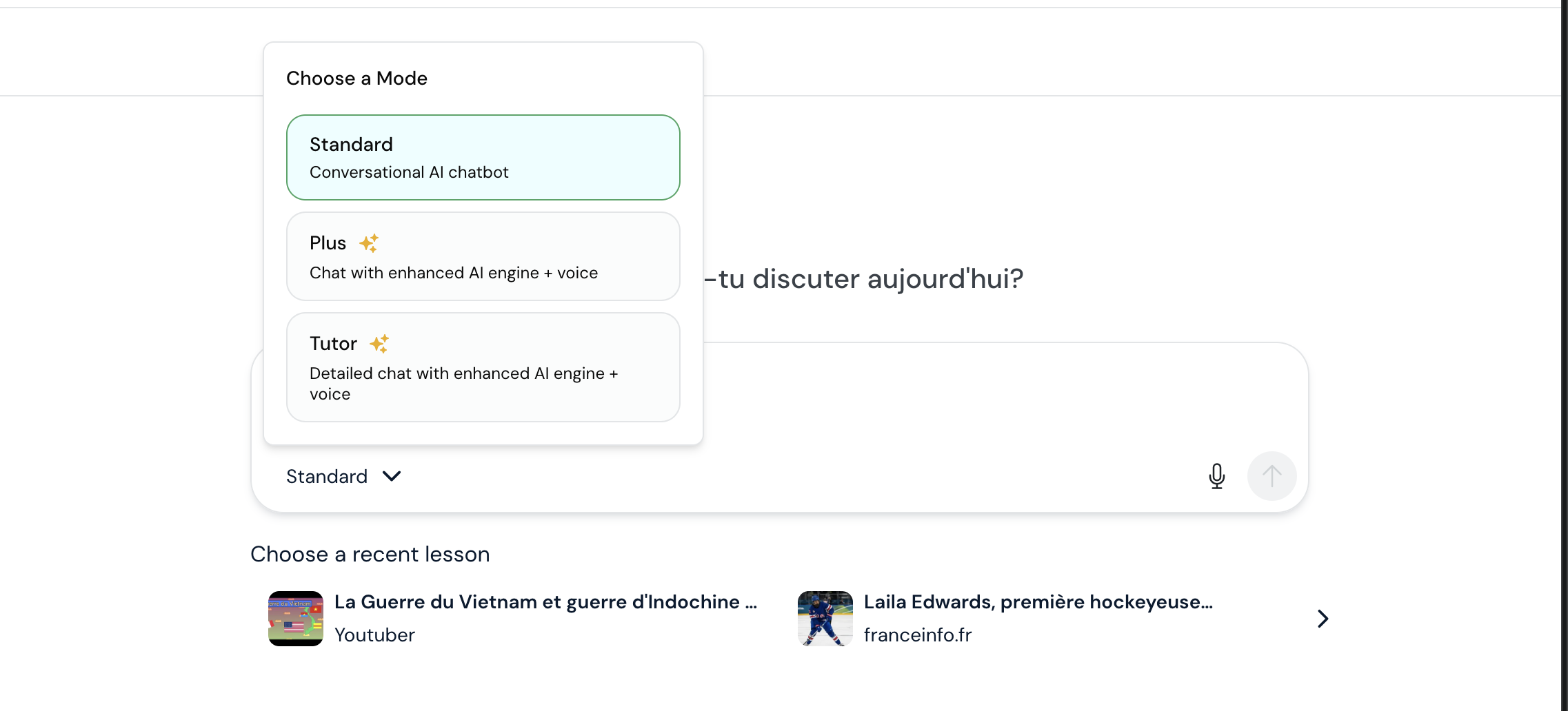 Your plan determines both which modes appear in the interface and which advanced capabilities (like lesson recommendations, lesson creation, or web search) Lynx can use on your behalf.