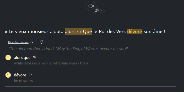 I have only the phrase “ alors que ” in my vocab but in the sentence below “ alors : « Que “ is also being highlighted. The punctuation seems to be ignored and it is being treated as the same phrase in my vocab.