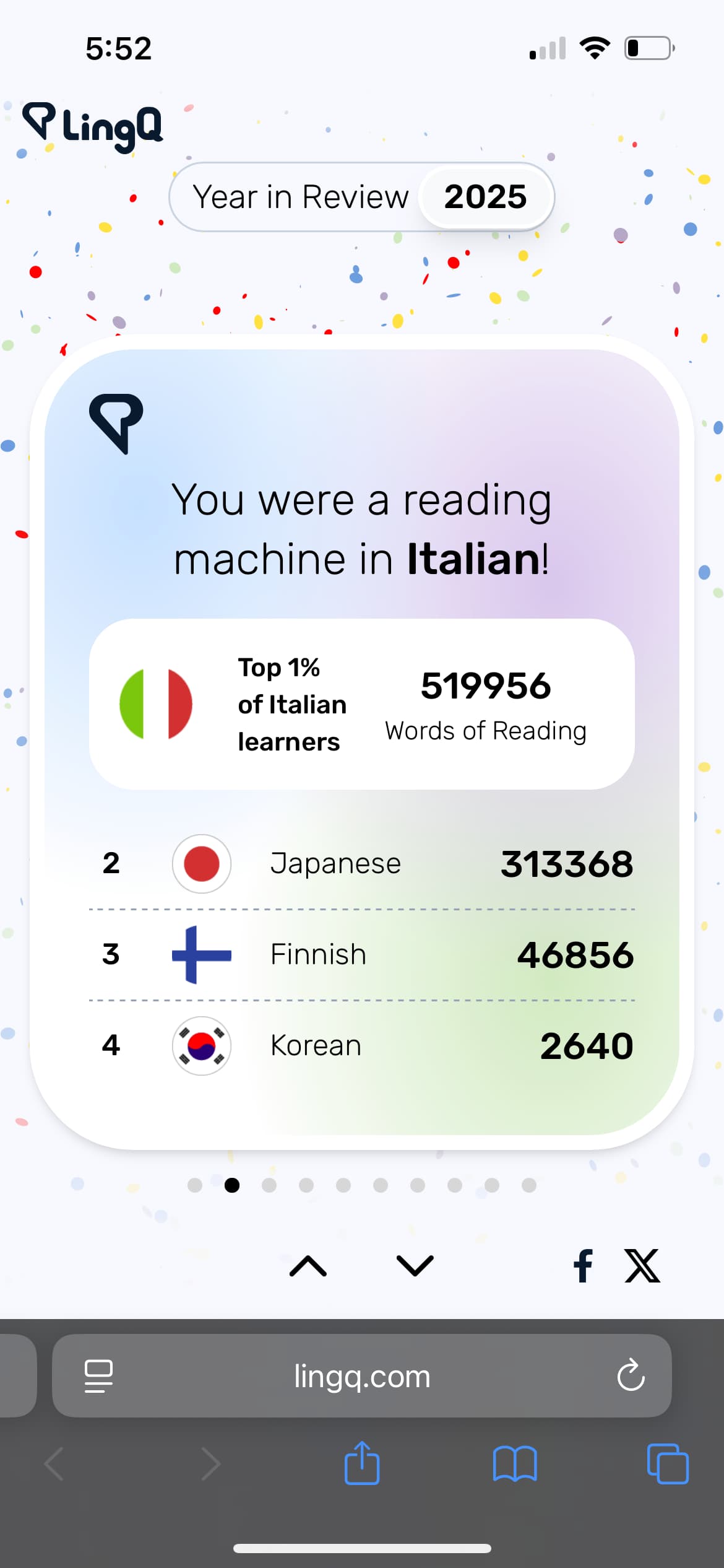 I used it mostly for Italian but also a podcast I like in Japanese. Was active 365 days. With spoken Japanese it is really annoying how it makes a new LingQ for example of telephone if you add in spoken language “tte” at the end of the word to signal stress but also a kind of filler. 電話 電話って. It’s not like Finnish cases. Also they split oddly like 電話してる could have a funky lingq like just the last two hiragana even though they are not typically standalone.