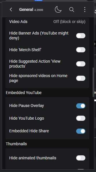 And thanks Daisy for mentioning the extension ‘Improve YouTube!’, but it seems this extension only works on the YouTube site, or am I missing something? Anyhow, I feel maybe my problem is not exactly related to a ‘hide pause overlay’ issue, because as can be seen in the reference video, this behavior doesn’t occur in ‘page view’. So, I wonder what is actually happening differently with the embedded video when in sentence view.